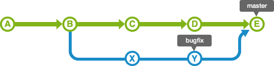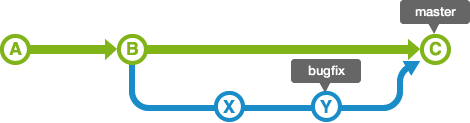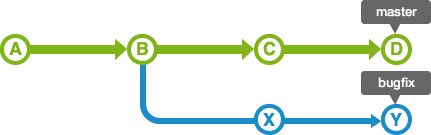 아래 그림과 같이 master 브랜치에서 분기하는 bugfix라는 브랜치가 있다고 가정하자.