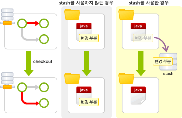 체크아웃할 때 전환할 브랜치에 변경 사항이 있을 경우 체크아웃에 실패하게 된다. 이 경우 전환 전 브랜치에서 커밋하지 않은 내용을 커밋하거나 stash를 이용해 일시적으로 변경 내용을 다른 곳에 저장하여 충돌을 피하게 한 뒤 체크아웃을 해야한다.