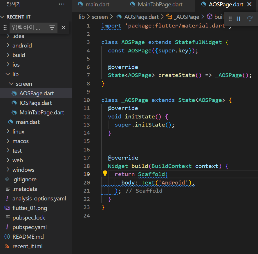 사실 탭뷰에서는 데이터 정의할 것은 딱히 없어서 initState에 코딩할 것은 없다.