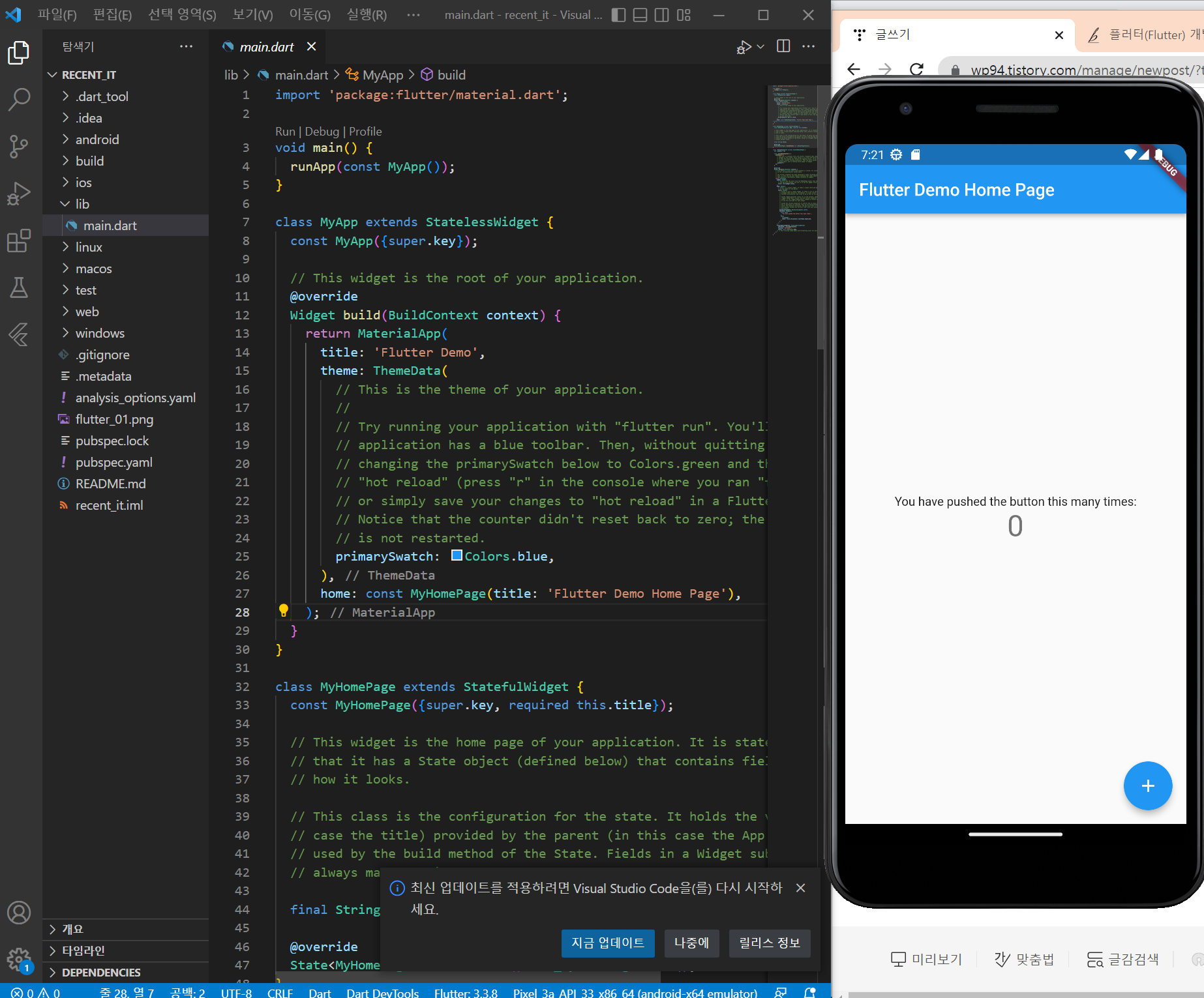 | Flutter 프로젝트 만들기 - 2 (0) | 2022.11.13 |