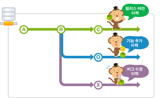 이렇듯 서로 다른 목적의 개발을 한 프로젝트에서 진행하기 때문에 각각 서로 다른 버전의 코드가 만들어 진다.